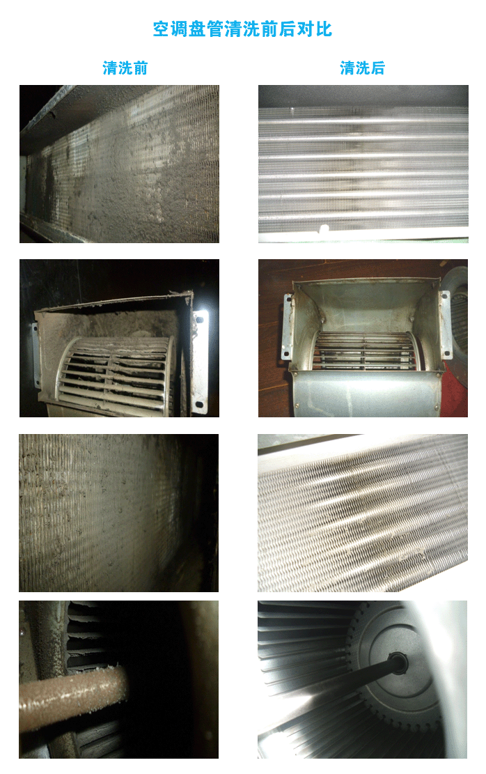 中央空調(diào)清洗后,能夠有效清除和控制銹蝕、水垢、微生物的污染現(xiàn)象,使冷凝器銅管保持潔凈,處于最佳熱交換狀態(tài),減少風(fēng)機(jī)盤管堵塞,避免故障發(fā)生,減少維修費(fèi)用,保證機(jī)組良性運(yùn)轉(zhuǎn),從而保證使中央空調(diào)的業(yè)主正常的生產(chǎn)工作生活。