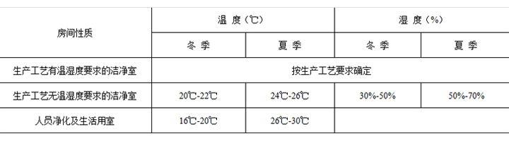 凈化室溫、濕度范圍
