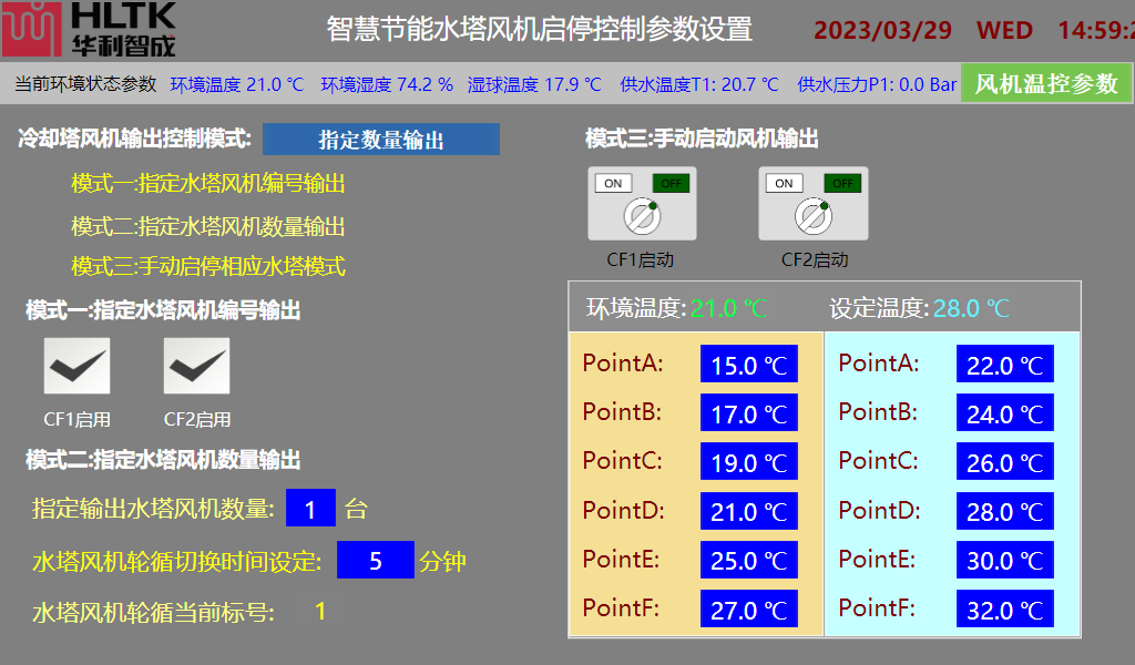 發(fā)布時間:2024-01-10 | 信息來源:東莞市華利機電有限公司為了適應(yīng)大規(guī)模工業(yè)冷卻與中央空調(diào)冷卻系統(tǒng)需求,實現(xiàn)高度智能化與節(jié)能化,我公司經(jīng)過多年的工業(yè)冷卻水系統(tǒng)設(shè)計及項目實踐積累的經(jīng)驗,針對性地為對大規(guī)模數(shù)據(jù)中心,工業(yè)冷卻、集中冷站應(yīng)用場景而研發(fā)的開式冷卻水塔工藝控制系統(tǒng)。本開式冷卻塔控制系統(tǒng)采用變頻器技術(shù),通過實時檢測冷卻水系統(tǒng)供回水溫度及室外氣象參數(shù),結(jié)合水塔的工作效率。通過控制系統(tǒng)作出高效模糊運算,動態(tài)調(diào)節(jié)風機頻率讓風機始終在一個最佳效率區(qū)間內(nèi)運行,達到節(jié)約系統(tǒng)運行能耗的目的與精確控制水溫以滿足工藝需求??筛鶕?jù)室外環(huán)境參數(shù)自動調(diào)節(jié)設(shè)定運行參數(shù),本系統(tǒng)可以通過本地觸摸屏與手機APP和PC電腦端隨時隨地查看水塔運行狀態(tài)以及歷史運行數(shù)據(jù)。