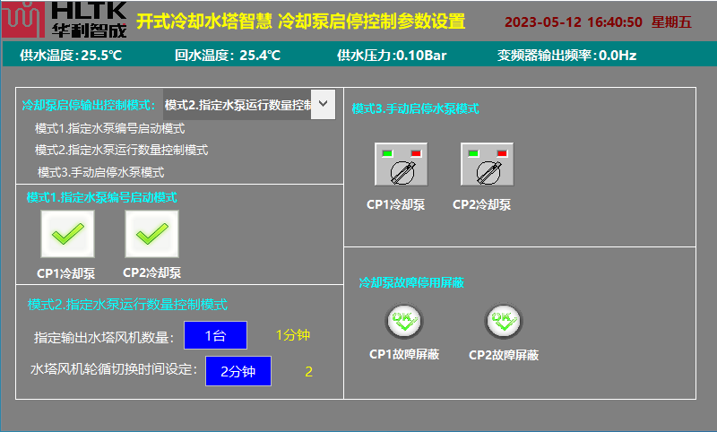 發(fā)布時(shí)間:2024-01-10 | 信息來源:東莞市華利機(jī)電有限公司為了適應(yīng)大規(guī)模工業(yè)冷卻與中央空調(diào)冷卻系統(tǒng)需求,實(shí)現(xiàn)高度智能化與節(jié)能化,我公司經(jīng)過多年的工業(yè)冷卻水系統(tǒng)設(shè)計(jì)及項(xiàng)目實(shí)踐積累的經(jīng)驗(yàn),針對(duì)性地為對(duì)大規(guī)模數(shù)據(jù)中心,工業(yè)冷卻、集中冷站應(yīng)用場(chǎng)景而研發(fā)的開式冷卻水塔工藝控制系統(tǒng)。本開式冷卻塔控制系統(tǒng)采用變頻器技術(shù),通過實(shí)時(shí)檢測(cè)冷卻水系統(tǒng)供回水溫度及室外氣象參數(shù),結(jié)合水塔的工作效率。通過控制系統(tǒng)作出高效模糊運(yùn)算,動(dòng)態(tài)調(diào)節(jié)風(fēng)機(jī)頻率讓風(fēng)機(jī)始終在一個(gè)最佳效率區(qū)間內(nèi)運(yùn)行,達(dá)到節(jié)約系統(tǒng)運(yùn)行能耗的目的與精確控制水溫以滿足工藝需求??筛鶕?jù)室外環(huán)境參數(shù)自動(dòng)調(diào)節(jié)設(shè)定運(yùn)行參數(shù),本系統(tǒng)可以通過本地觸摸屏與手機(jī)APP和PC電腦端隨時(shí)隨地查看水塔運(yùn)行狀態(tài)以及歷史運(yùn)行數(shù)據(jù)。