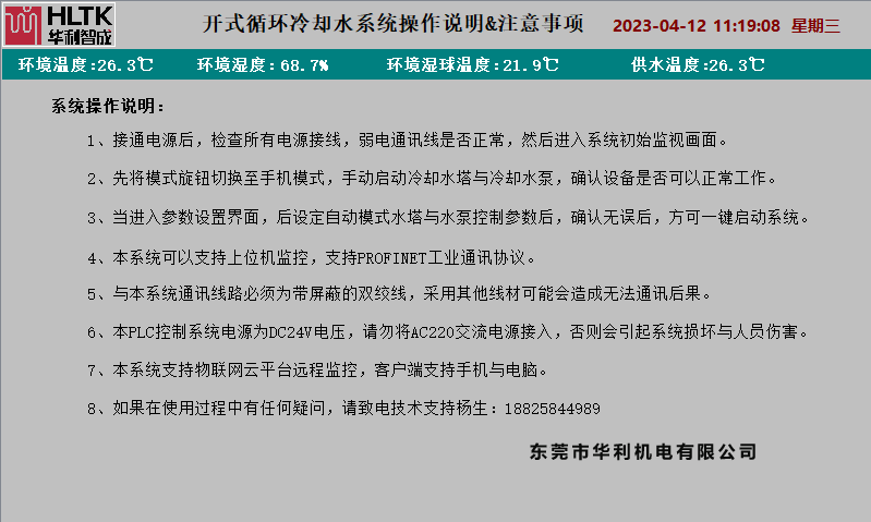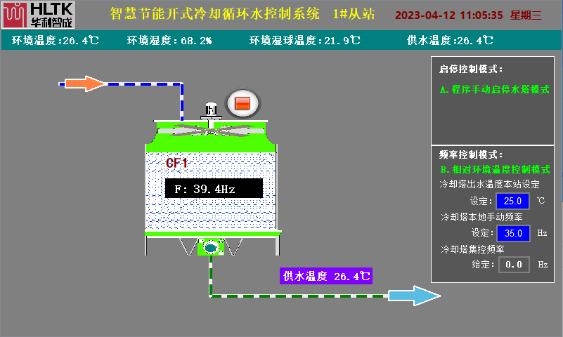 發(fā)布時(shí)間:2024-01-10 | 信息來(lái)源:東莞市華利機(jī)電有限公司為了適應(yīng)大規(guī)模工業(yè)冷卻與中央空調(diào)冷卻系統(tǒng)需求,實(shí)現(xiàn)高度智能化與節(jié)能化,我公司經(jīng)過(guò)多年的工業(yè)冷卻水系統(tǒng)設(shè)計(jì)及項(xiàng)目實(shí)踐積累的經(jīng)驗(yàn),針對(duì)性地為對(duì)大規(guī)模數(shù)據(jù)中心,工業(yè)冷卻、集中冷站應(yīng)用場(chǎng)景而研發(fā)的開式冷卻水塔工藝控制系統(tǒng)。本開式冷卻塔控制系統(tǒng)采用變頻器技術(shù),通過(guò)實(shí)時(shí)檢測(cè)冷卻水系統(tǒng)供回水溫度及室外氣象參數(shù),結(jié)合水塔的工作效率。通過(guò)控制系統(tǒng)作出高效模糊運(yùn)算,動(dòng)態(tài)調(diào)節(jié)風(fēng)機(jī)頻率讓風(fēng)機(jī)始終在一個(gè)最佳效率區(qū)間內(nèi)運(yùn)行,達(dá)到節(jié)約系統(tǒng)運(yùn)行能耗的目的與精確控制水溫以滿足工藝需求??筛鶕?jù)室外環(huán)境參數(shù)自動(dòng)調(diào)節(jié)設(shè)定運(yùn)行參數(shù),本系統(tǒng)可以通過(guò)本地觸摸屏與手機(jī)APP和PC電腦端隨時(shí)隨地查看水塔運(yùn)行狀態(tài)以及歷史運(yùn)行數(shù)據(jù)。