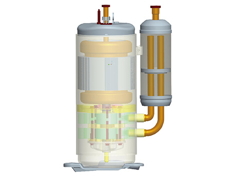 壓縮機為直流變頻壓縮機,電機部分采用高效永磁同步電動機,效率更高。