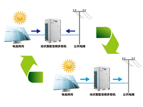 光伏與空調(diào)無縫結(jié)合,機(jī)組用電自給自足。