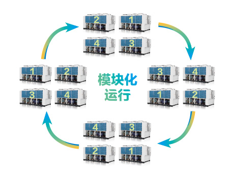 淡化主、子模塊設(shè)計(jì),任意單元模塊均可作為主模塊,輕松應(yīng)對(duì)各種突發(fā)情況;不同容量的單元模塊可以任意組合,從而形成不同冷量的機(jī)組,應(yīng)用范圍廣;單一模塊內(nèi)任意一臺(tái)機(jī)組出現(xiàn)故障,模塊內(nèi)其他機(jī)組不受影響,保證整個(gè)系統(tǒng)的冷量供應(yīng)。