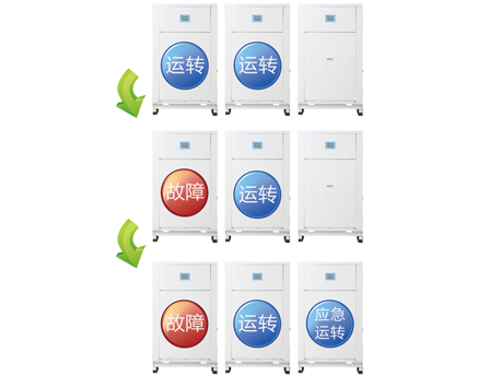單模塊獨(dú)立系統(tǒng)壓縮機(jī)逐臺(tái)啟動(dòng),均衡運(yùn)轉(zhuǎn),整機(jī)壽命更長;各模塊獨(dú)立系統(tǒng)運(yùn)行,單模塊故障時(shí)不影響其他模塊運(yùn)行