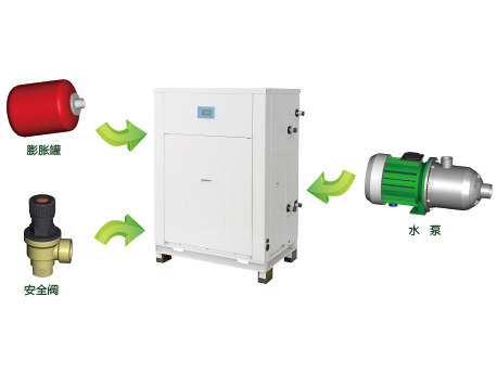 自帶膨脹罐、水泵自帶水泵、膨脹罐和水路安全閥,無需用戶二次采購,降低成本同時(shí)保證質(zhì)量,機(jī)組安裝更快捷方便。