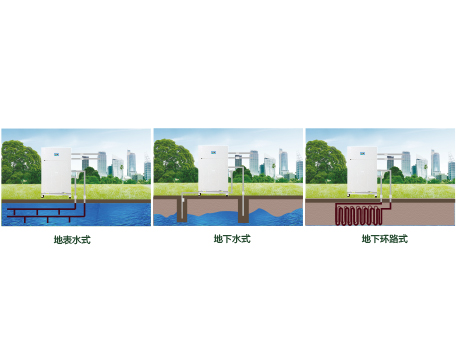 水源溫度夏季比空氣低,冬季比空氣高,制熱時(shí)蒸發(fā)溫度提高,制冷時(shí)冷凝溫度降低,能效比更高.